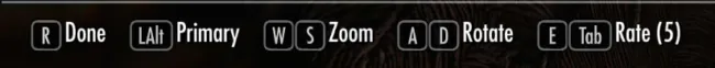 カメラを自由に動かせます。 LAlt(左Alt)キー:押している間、メニューが切り替わります(Primary⇔Secondary) WSキー:Primaryではカメラ上下移動、Secondaryではズーム/アウトズーム ADキー:Primaryではカメラ左右移動、Secondaryではモデルの左右回転 E/Tabキー:数値の調整