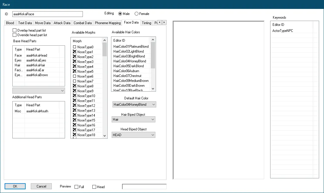 CKでフォロワーmodのespを開いて、首から上のすべてのパーツを複製→任意の名前にリネームし、それを設定し直すことでvanillaから切り離され、(ノード名が偶然かぶったりしない限りは)他modと一切競合しなくなります。 パーツの名称はnifskopeでヘッドメッシュを開くか、CK上のActorデータから確認できます。