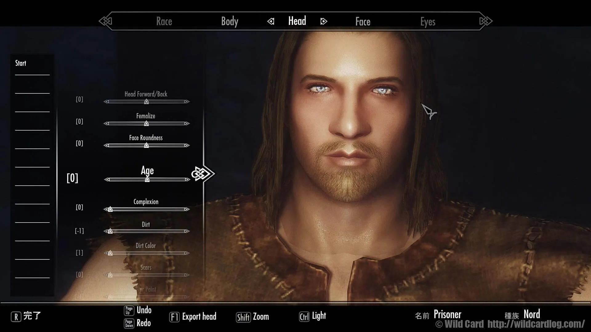 ノルド男性を選択した状態。これをいじっていきます。 Pretty Faceを導入しているともうこの時点でvanillaより断然滑らかです。おわかりになりますでしょうか。