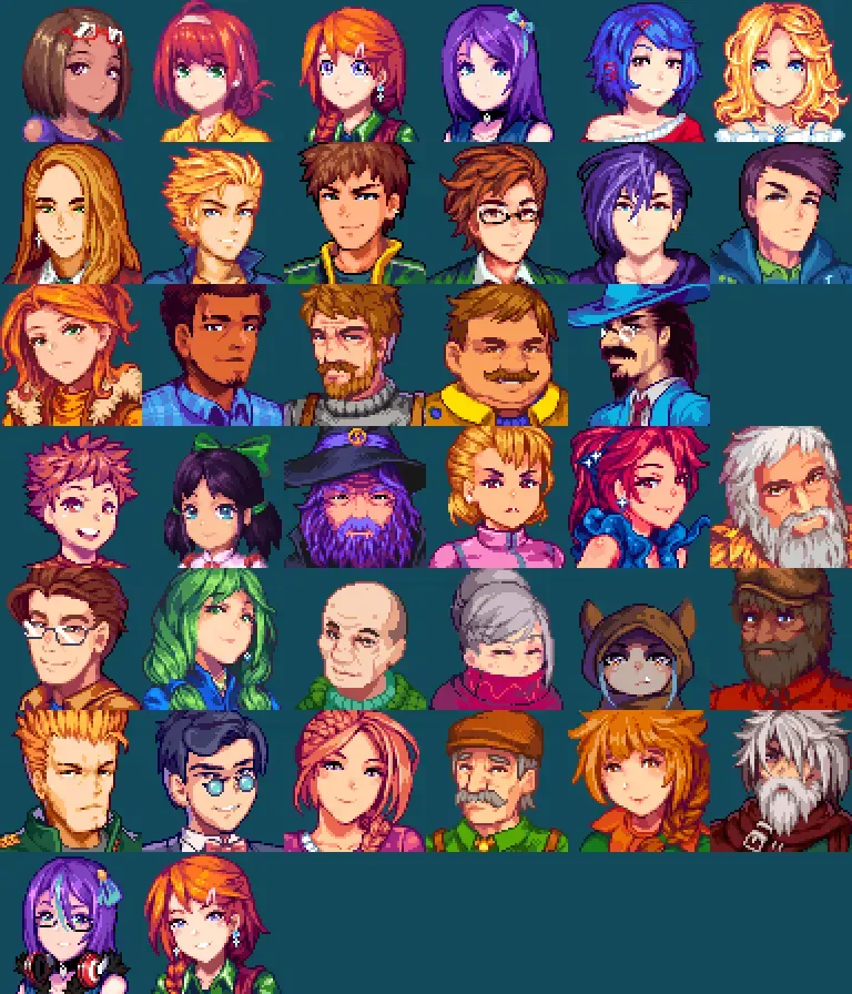 【XNB】上は結婚対象キャラ12名、下はその他の村人をカバーするアニメ調ポートレート詰め合わせ。 一部キャラに差分あり。