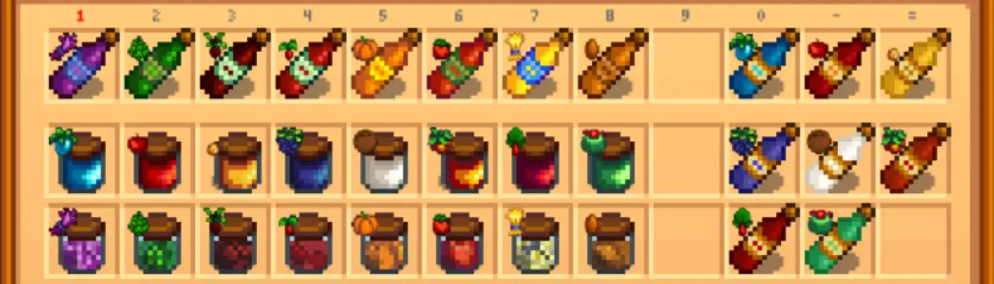Better Artisan Good Icons (SMAPI必須) ジャムやワインなど生産物のアイコンを個別のものに変更します。視認しやすく見た目にも楽しいです。 configファイルを編集することにより左上にある原材料マークの有無を変更可能。