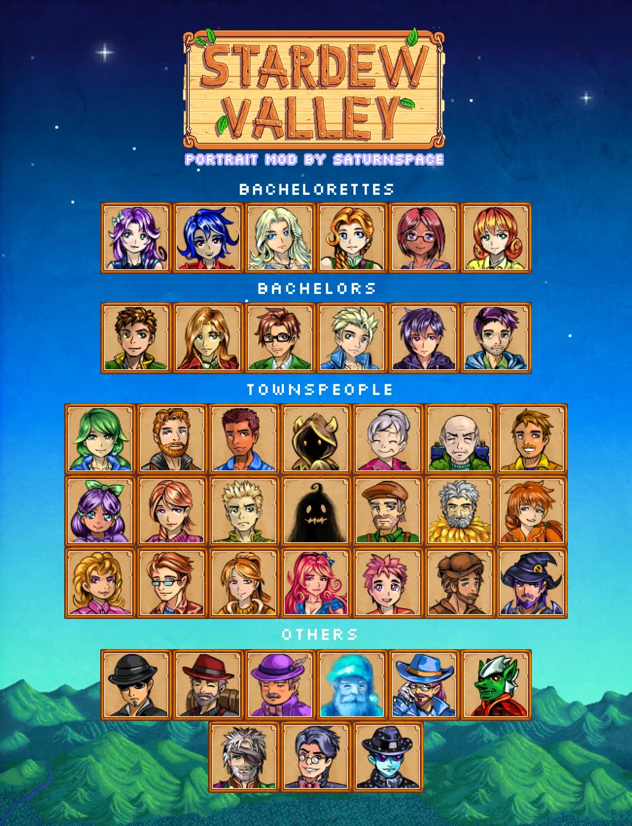 2021/06追記:各ポートレートが何に対応しているか併記しましたので参考にどうぞ。 ちなみにCP非対応でXNBファイルのみ配布されているmodもPortraitureを使うことで元のファイルを上書きせず導入することができます。