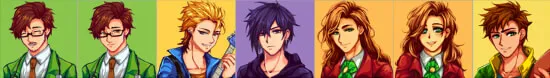 【XNB】Harvey, Sam, Sebastian, Elliott, Alexのポートレート。アニメタッチの美形になります。 Harveyは髭あり/なし、Elliottは男性版と女性版が選べます。 別ファイルでJas&Vincentのセットもあり。