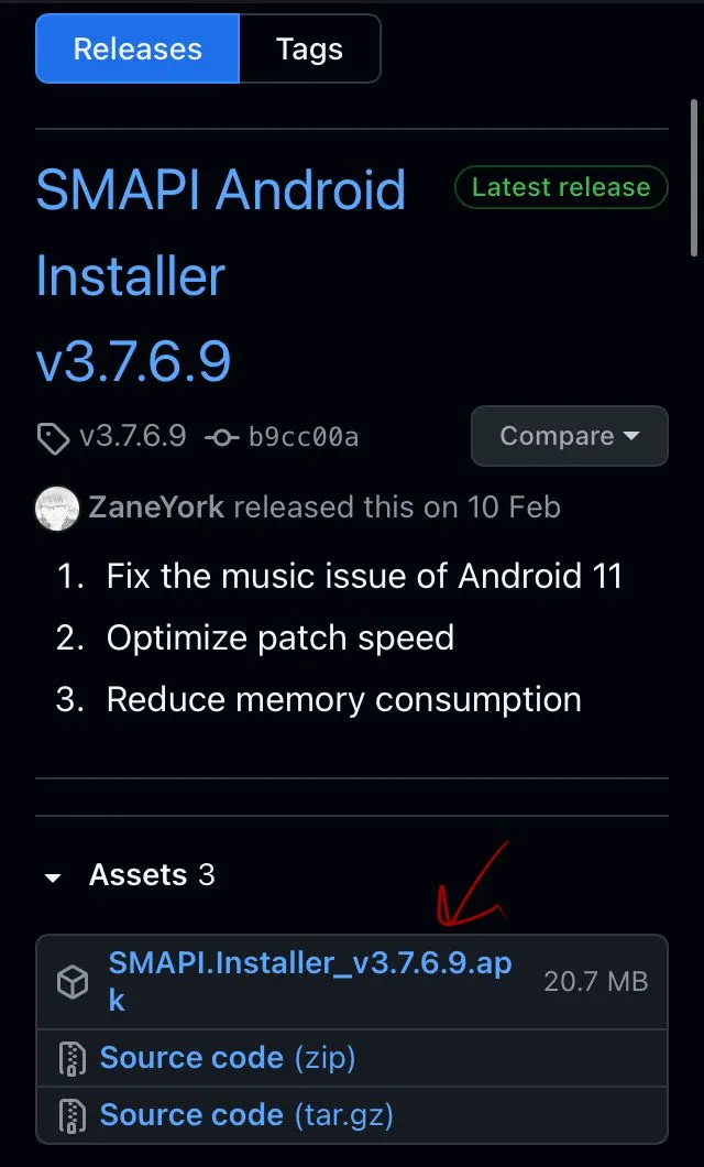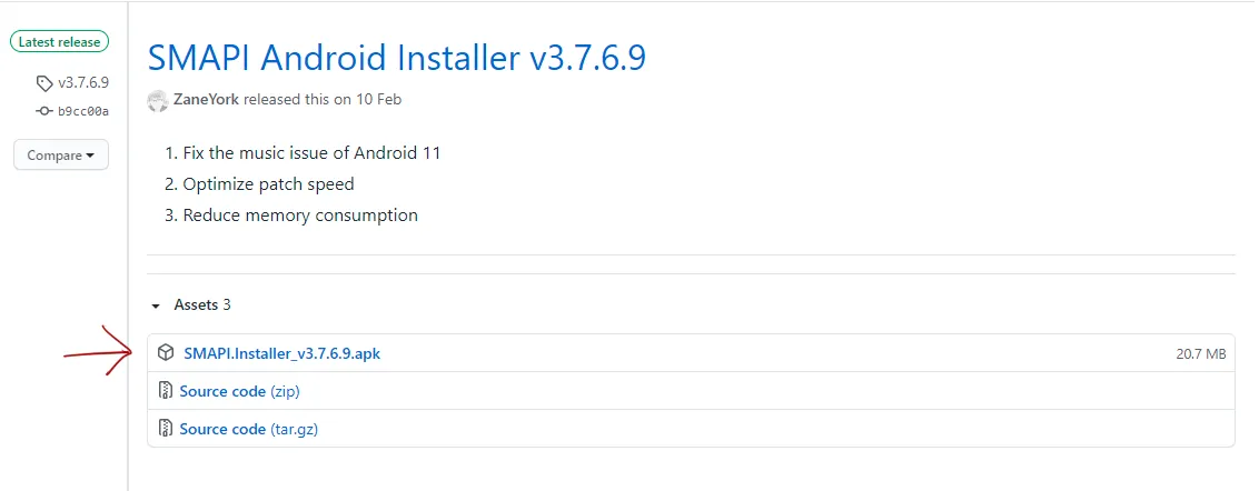 “Latest Release”となっているものが最新のバージョンです。 Assetsの欄から.apkファイルを探してクリックします。