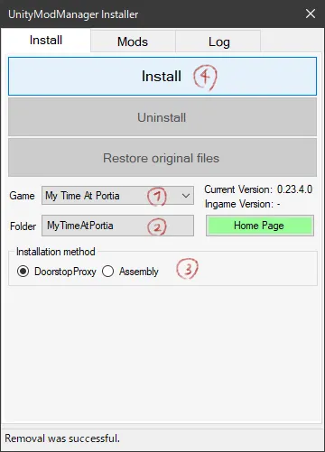 - インストール方式 デフォルトのDoorstop Proxyが推奨されていますが、mac/linux, Origin Gamesで使用する場合にはAssemblyにしてくださいとのこと。